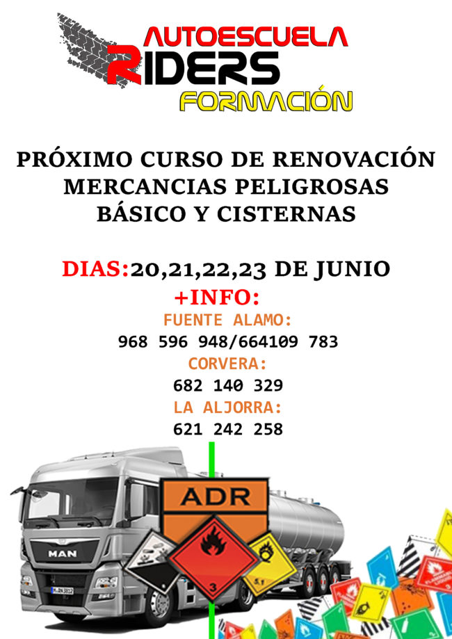 Próximo curso de renovación mercancías peligrosas BÁSICO Y CISTERNAS.
